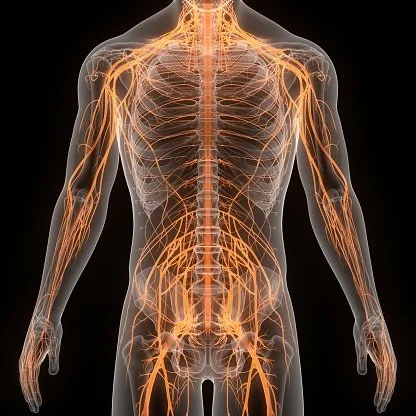 Your central nervous system is housed inside the spinal column and reaches out through the body into the periphery nervouse system. You can look at the nervous system in two ways The first way is that you have have 7 trillion individual nerves. The second way is that you have one nerve that connects and communicates information at the detail of 7 million pixels of clarity. The nervous system transmits signals to the body and as well as receives information from the sense.